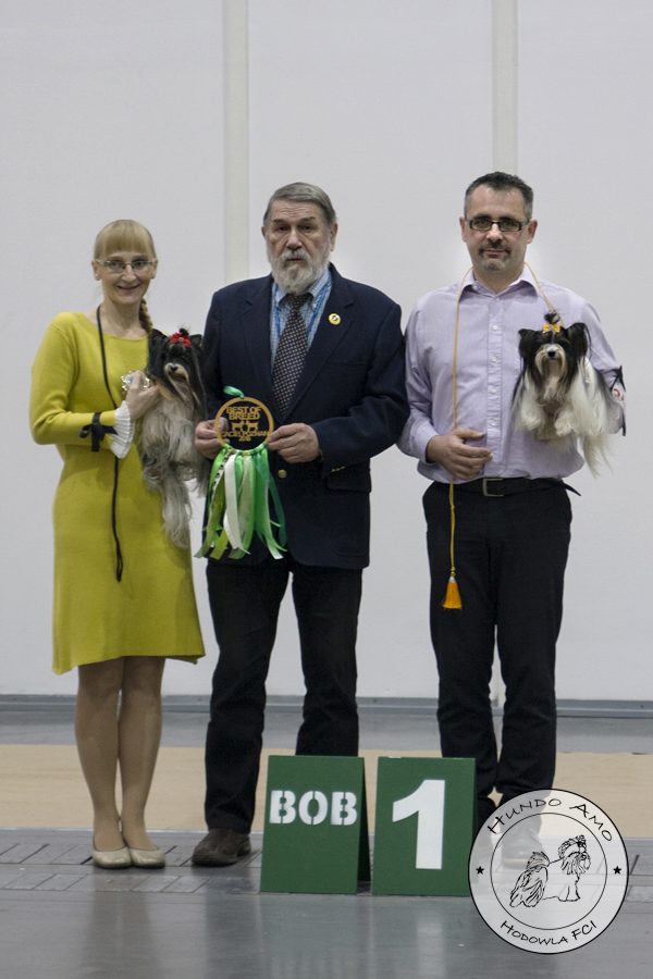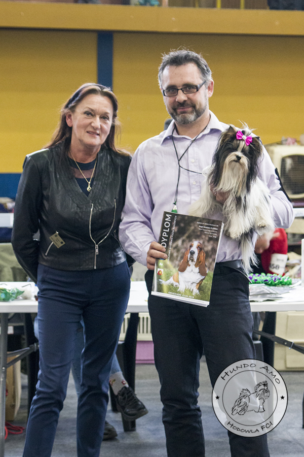 • klasa pośrednia – ocena Doskonała, lokata I, medal Złoty, tytuły Najlepsza Dorosła Suka, Zwycięzca Rasy BOB, certyfikat CWC/CAC