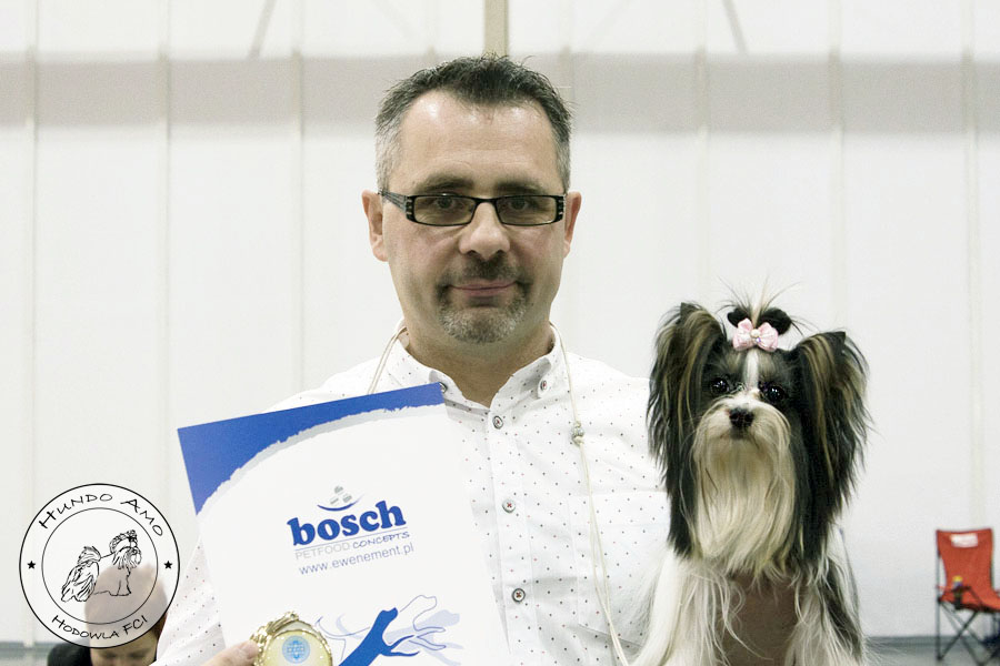 • klasa otwarta – ocena Doskonała, lokata I, medal Złoty, tytuły Najlepsza Dorosła Suka, Zwycięzca Płci Przeciwnej BOS, certyfikat CWC/CAC