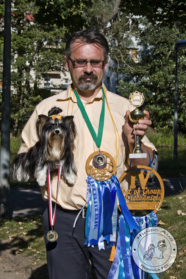 • klasa szczeniąt – ocena Wybitnie Obiecująca, lokata I, tytuł Najlepsze Szczenię w Rasie